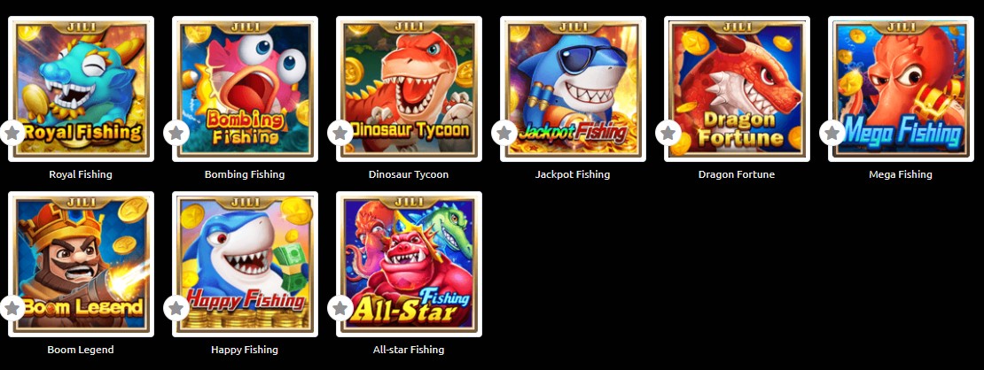 Royal Fishing, Bombing Fishing, Dinosaur Tycoon, Jackpot Fishing, Dragon Fortune, Mega Fishing, Boom Legend, Happy Fishing, All-star Fishing.